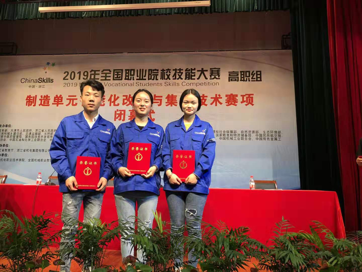 2019年6月2日,第十二届全国职业院校技能大赛成绩揭晓,yl6809永利参赛队再创佳绩,麻静怡,王蒙佳,刘进三名员工,在严胜利经理和张昭晗老师的精心指导下,代表河南省参加的“制造单元智能化改造与集成技术”项目,获得国赛三等奖。