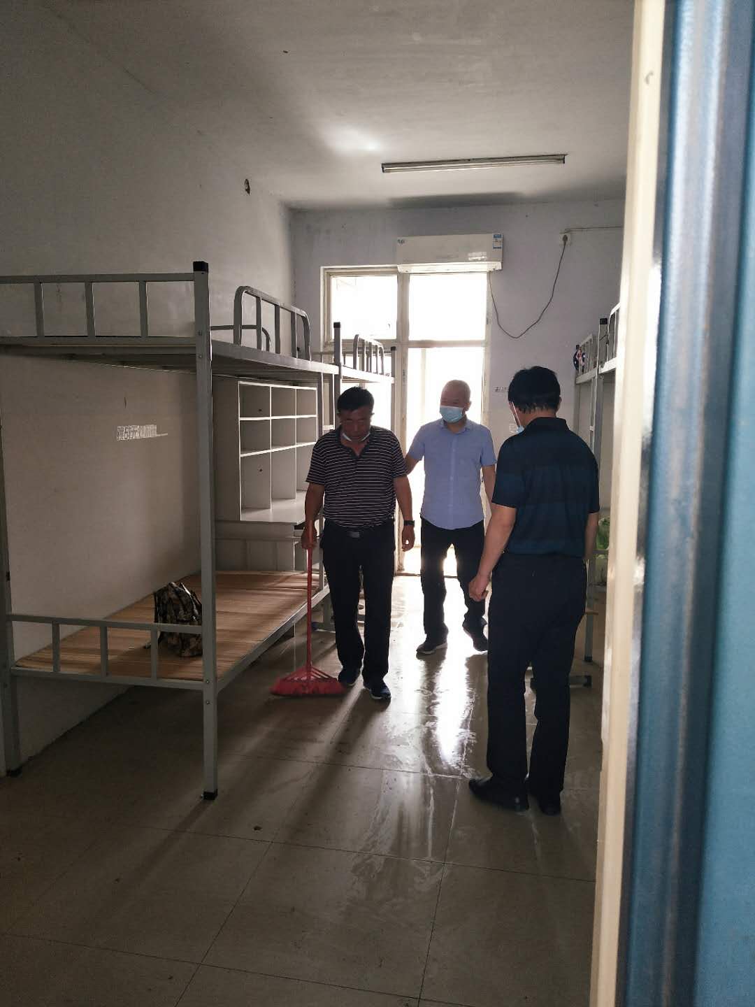 5月28日上午8点30分,yl6809永利全体老师来到院综合办公室,进行签到和体温测量。在公司党总支书崔东风,经理严胜利的带领下全体老师来到宿舍,按照分工,每位教师打扫一间员工宿舍,老师们积极投入到员工宿舍卫生清扫、整理和消毒中。老师们像在给自己的孩子们打扫房间一样,将被褥、鞋子、生活用品等物品规整整齐,门窗、地板擦洗干净,离开时对宿舍进行消毒、落锁。