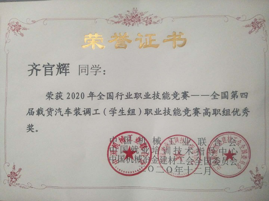 yl6809永利在全国第四届载货汽车装调工(员工组)职业技能竞赛中喜获佳绩,yl6809永利被授予“最佳组织奖”。公司2个参赛队在比赛中发挥出色,分别获得二等奖、优秀奖各1项,优秀指导教师奖1项。