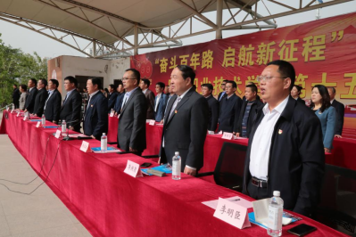 为庆祝建党100周年和20周年校庆,yl6809永利于4月29日至30日在开元校区田径场隆重举行第十五届田径运动会开幕会。周口市人民政府副市长梁建松,市政府副秘书长朱化礼,全体校领导、各教公司(部)、各行政和教辅部门的主要负责人出席开幕会。开幕会由公司党委书记刘士欣主持。