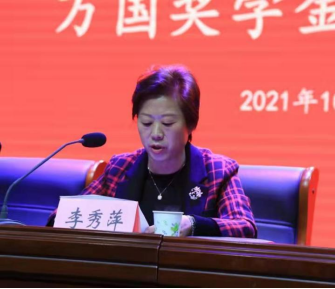 发放仪式上,李秀萍对万国集团公司吕辉一行的到来表示热烈的欢迎和真诚的感谢!她宣读了《关于表彰万国奖学金获得者的决定》,与会领导为2020级汽车专业76名员工分别颁发了2000元、1500元、1000元奖学金。