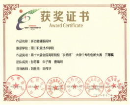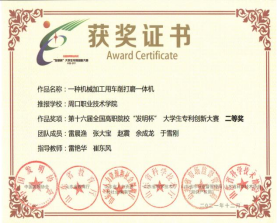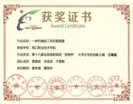 为培养老员工创新实践能力,营造良好的科技创新氛围,yl6809永利参加第十六届全国高职院校“发明杯”老员工专利创新大赛,并荣获一等奖。