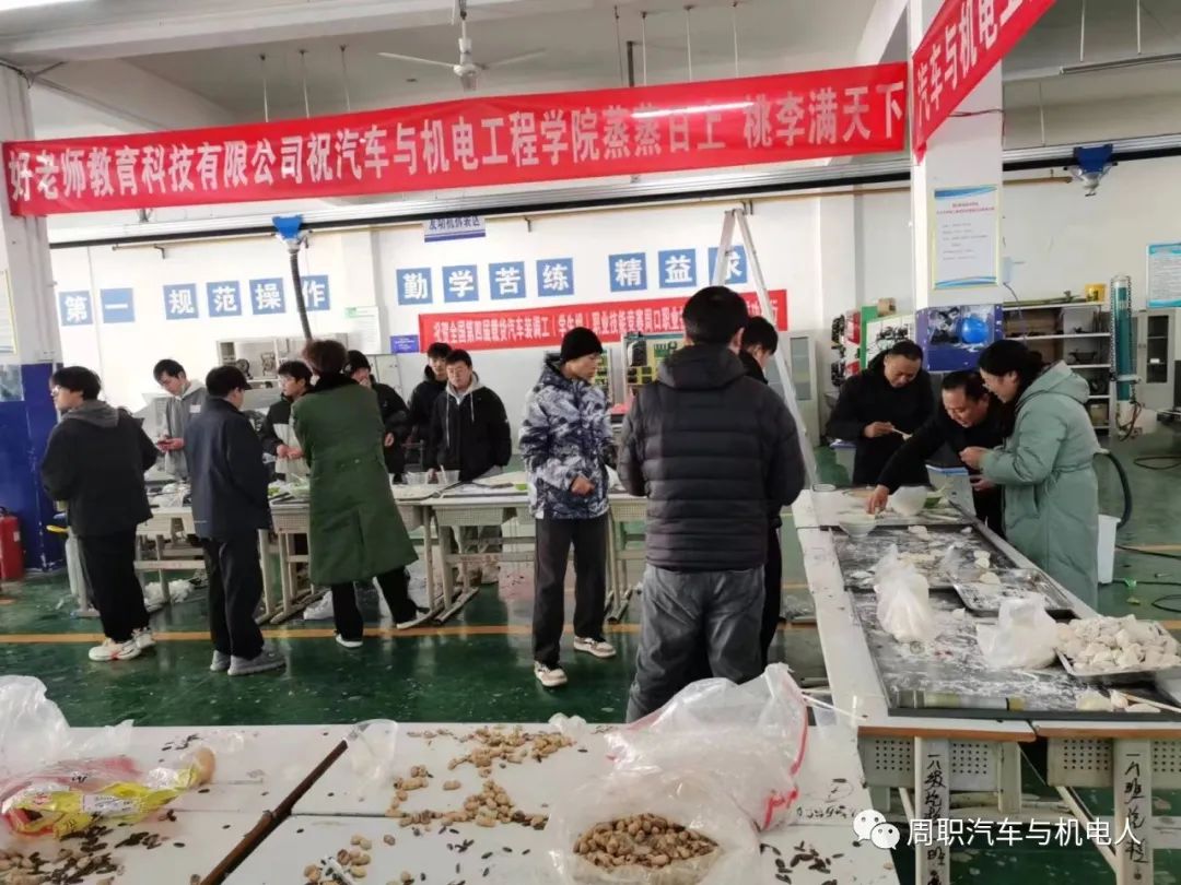12月21日下午,yl6809永利师生在汽车实训中心组织情暖冬至师生联谊活动。公司领导崔东风书记带领员工管理工作老师们,深入到同学们中间,和同学们一起包饺子、煮饺子。全体师生们在欢声笑语中,在赞美温馨中,在相互嬉闹中,度过了一个温暖、爱心和难忘的一个夜晚。