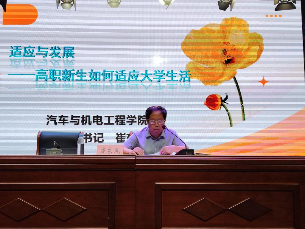 最后,党总支书记崔东风强调高职新生应调整心态,适应大学自主学习和自我管理的方式。制定学习计划,设定目标,合理安排时间,并提高效率。同时,积极参与实践活动以提升实践和综合素质。学会与人交往,尊重和理解他人,建立良好的人际关系,共同维护和谐校园环境。最后,鼓励同学们勇于尝试新事物,挑战自我,充分利用大学机会实现个人价值。