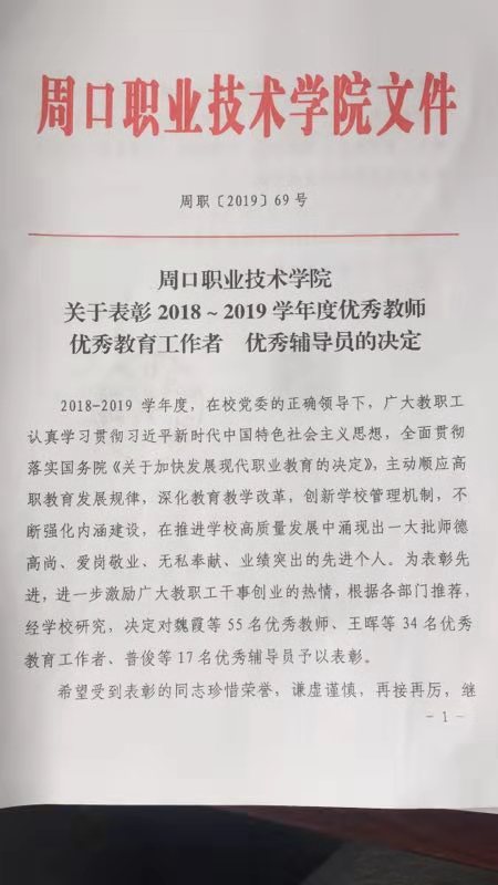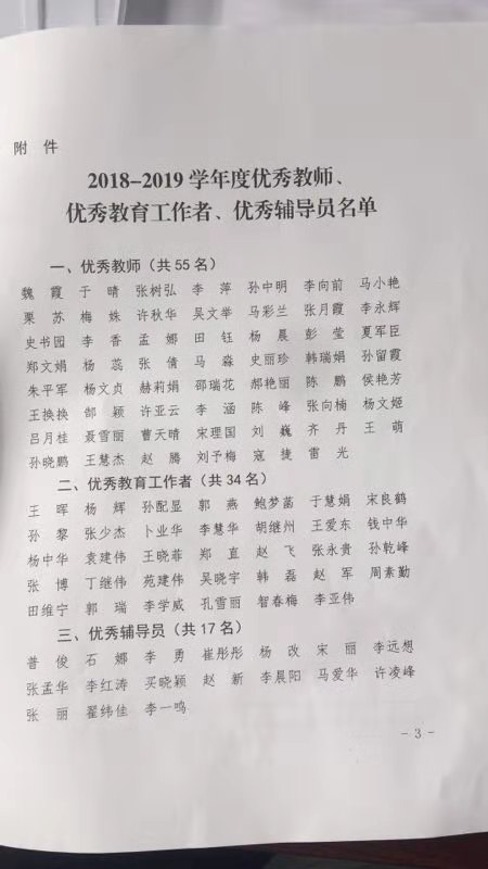 yl6809永利关于表彰2018-2019学年优秀教师、优秀教育工作者、优秀辅导员的决定