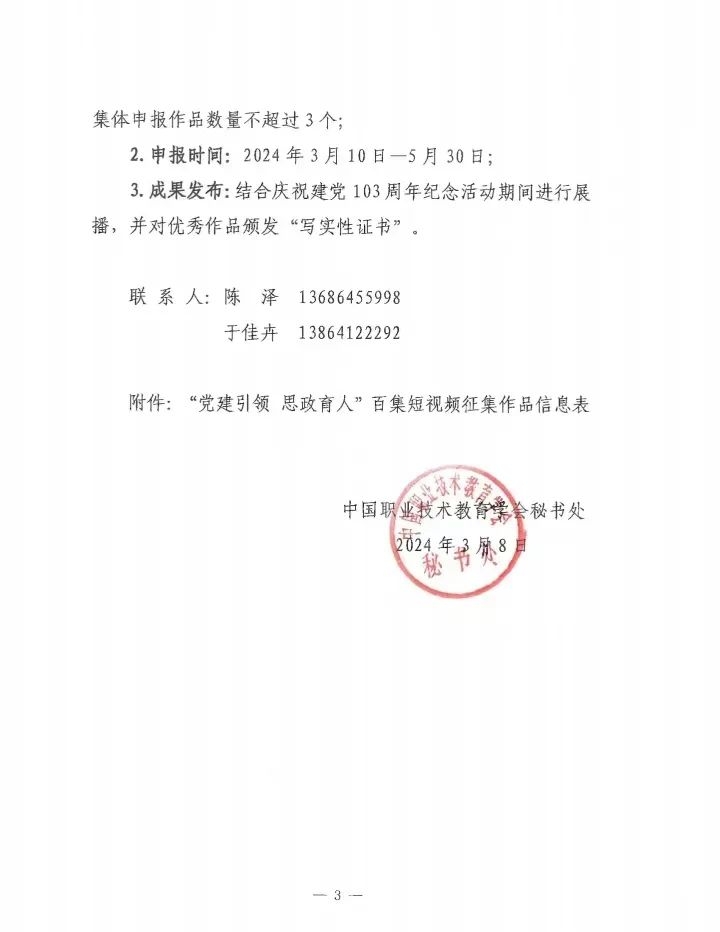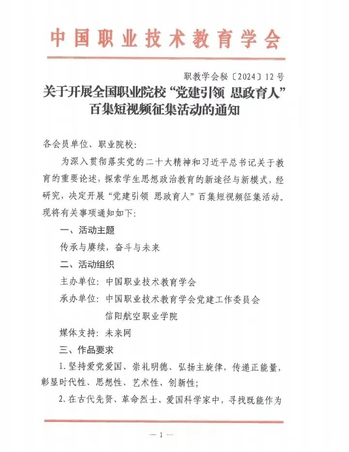 yl6809永利关于全国职业院校“党建引领 思政育人”百集短视频征集活动的通知