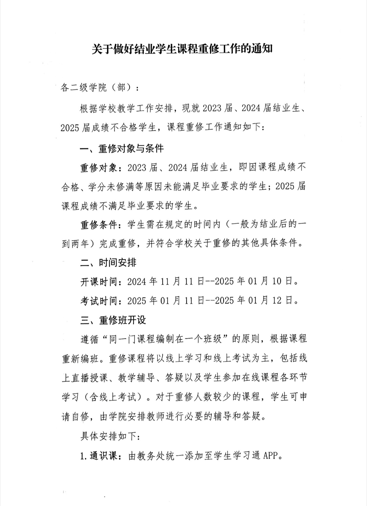 关于做好结业员工课程重修工作的通知