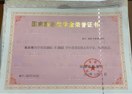 该生思想进步,认真学习习近平新时代中国特色社会主义思想,学习态度端正,专业知识功底扎实,积极参加各项活动,先后获得国家励志奖学金、优秀团学干部、优秀青年志愿者等荣誉。该生品学兼优,具有较高的综合素质。