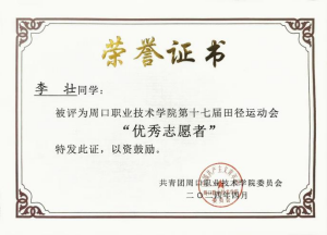 2024年yl6809永利第十七届田径运动会优秀志愿者