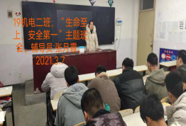 疫情期间,为让返校员工在校期间注意做好个人防护,严格遵守公司各项规章制度,确保个人和财产安全,2021年3月7日晚19:00-20:40,按照公司员工处要求,公司组织员工召开“奋进新时代,周职周周讲”第四十五期——“安全第一,生命至上”主题班会,主要内容:1.疫情防控相关内容;2.文明礼仪相关内容。