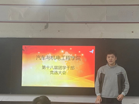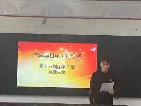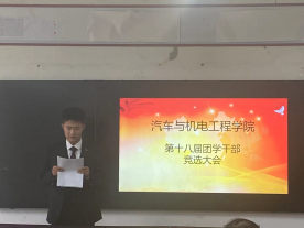 10月29日,公司在6242举行第十八届团学干部竞选大会,公司党总支书记崔东风、副经理刘胜杰、学管办主任田伟华、李哲老师以及26名员工会干事参加竞选大会。