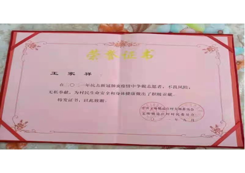 为响应国家号召,yl6809永利公司奖学金获得者20级应电电气一班王家祥,志愿加入河南省许昌市禹州市文殊镇边庄村疫情防控工作小组,对村里来往人员进行人员信息登记、体温检测、宣传防疫知识、根据在公司学到的知识活学活用,充分展现了当代老员工的风貌。疫情当前,处处是“战场”,人人是“战士”,面对疫情每个人都是一道“长城”。