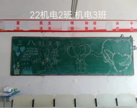 为了纪念三八国际劳动妇女节,进一步提高了广大妇女的法律素质和重视自身身心健康的意识。yl6809永利举办了“三八妇女节黑板报”活动,各个班级都积极的参与其中。