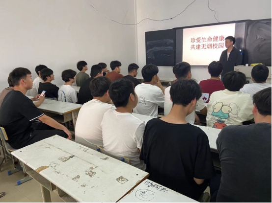 班会期间各班辅导员要求从我做起,营造无烟校园环境。自觉远离烟草,倡导文明健康的生活习惯。老师不在教学区、校园内等公共场所及员工面前吸烟,并带头戒烟,做戒烟先锋;员工不在宿舍、教室、图书馆、卫生间、餐厅、操场等校园公众场所吸烟,争做文明员工。拒绝“第一支烟”,远离烟草危害,永做健康公民;主动参与禁烟,给身边的人创造一个健康的学习、工作和生活环境。积极参与宣传吸烟的危害,让你的亲人和身边的朋友明白吸烟的危害,自觉远离烟草。坚决不接受敬烟,并积极劝阻他人吸烟。当遇到他人敬烟时,请礼貌拒绝;为了自己和大家的健康,请对身边的每一个同学友好地提醒和劝诫,并提醒其吸烟的危害。