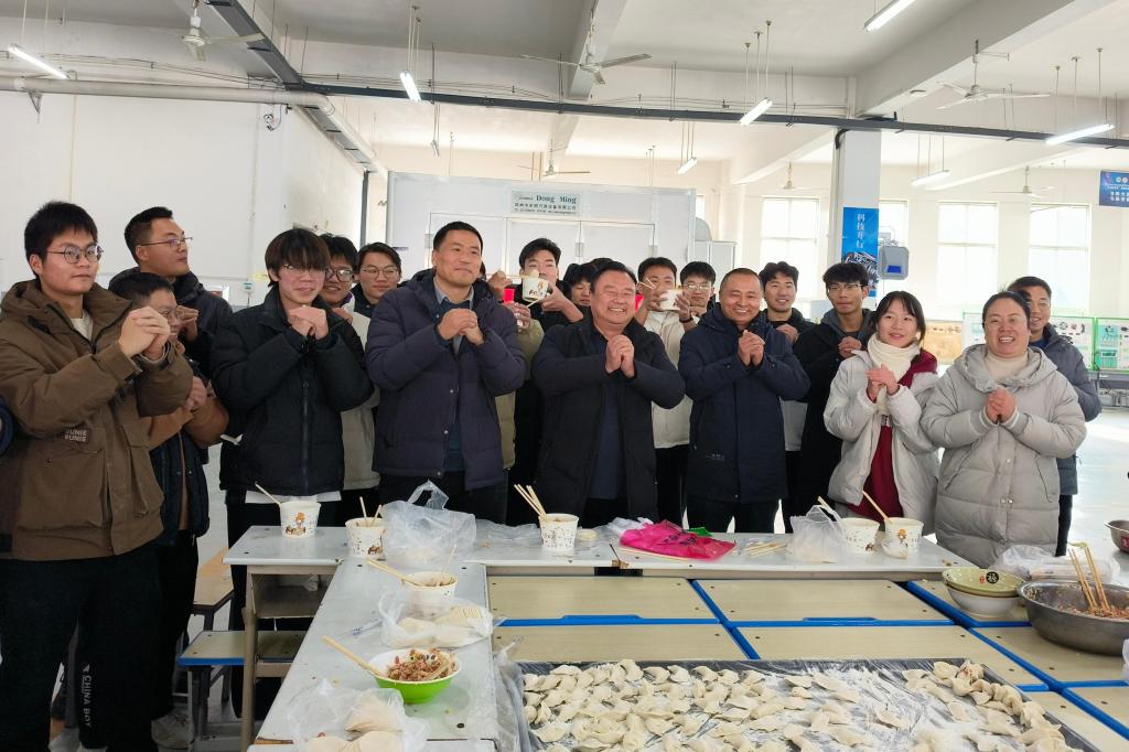 热气腾腾的饺子出锅后,师生们围坐在一起,共同品尝着自己的劳动成果。大家一边吃着美味的饺子,一边分享着节日的喜悦与校园生活的点滴感悟。同时,经理李向前携在场师生发表冬至祝福词。此刻,老师与员工之间那道分明的界限悄然隐去,只有浓浓的情谊在空气中流淌。