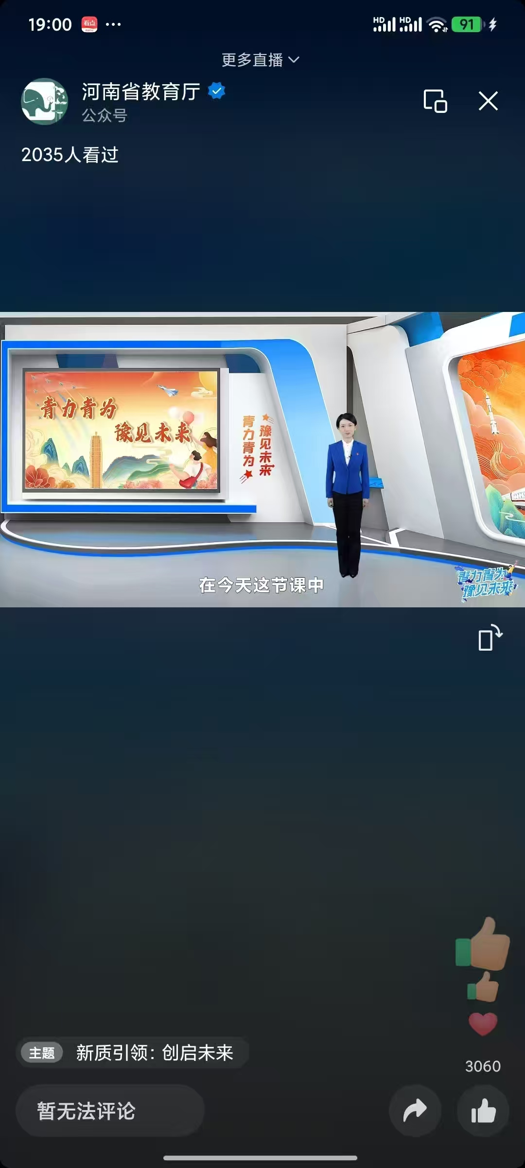 为提升员工文化素养、激发创新意识与追梦热情。1月21日至1月23日,公司组织全体师生开展为期三天的“青力青为 豫见未来”主题线上直播观看活动。此次直播活动由河南省教育厅主办,围绕非遗对话、新质引领、青年追梦三个主题展开。
