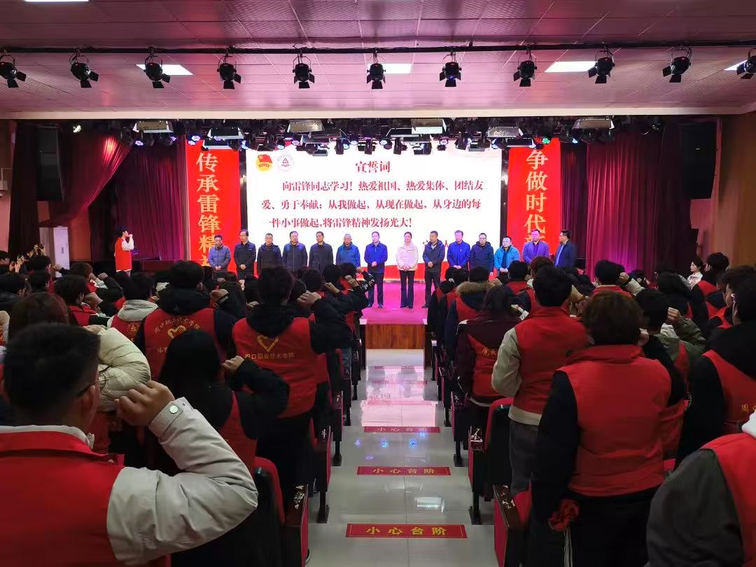 员工志愿者代表领誓向雷锋同志学习!他身姿挺拔,声音如洪钟般响彻全场:“向雷锋同志学习,以他为楷模,时刻牢记为人民服务的宗旨!”