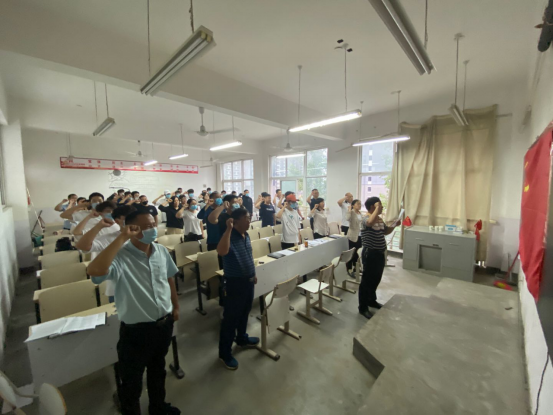 会前,崔书记带领全体教师、员工党员重温入党誓词和宣誓。
