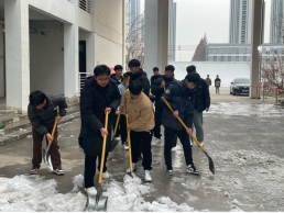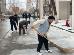最美下雪天,最暖扫雪人。在员工支部书记的带领下,入党积极分子自觉的投入到扫雪义务劳动中,他们不畏严寒,互相配合,动用各种扫雪工具。在公司主干道内用自己的实际行动,为同学们铲出了一条条安全、放心的开学之路。