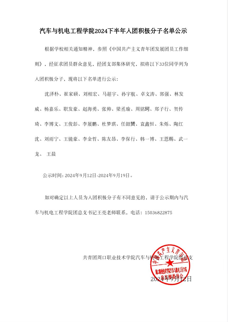 2024下半年入团积极分子名单公示