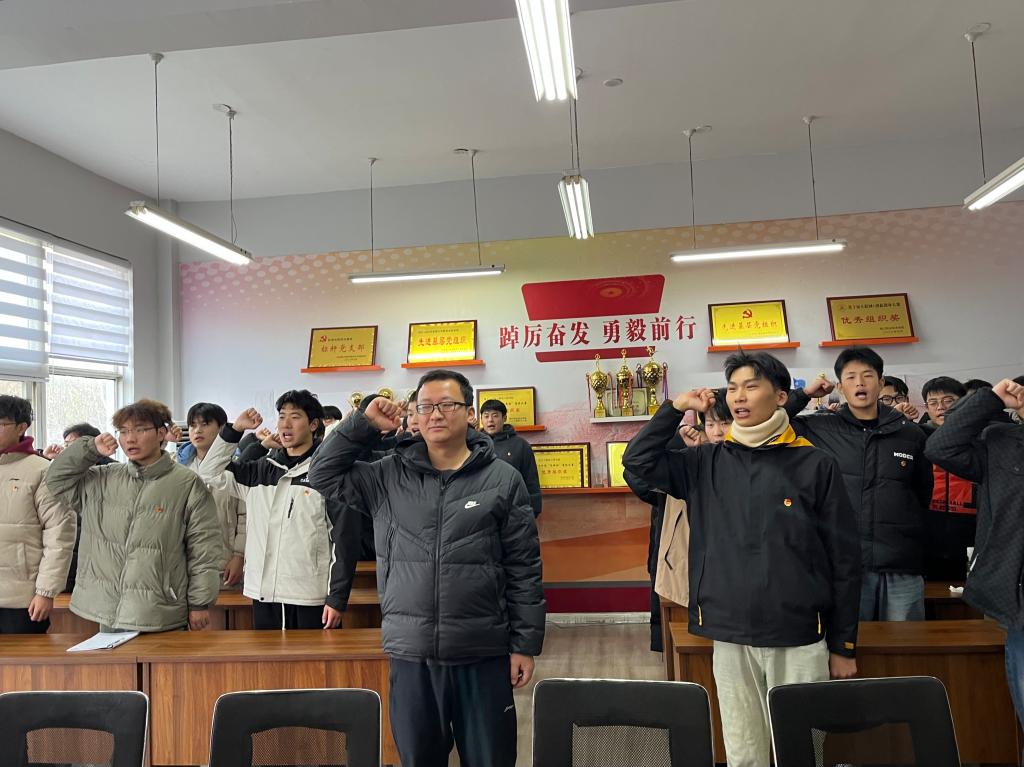 在团总支书记王亮的带领下,新团员们面向团旗,举起右拳,庄严宣誓。誓言铿锵有力,表达了新团员们对共青团组织的无限忠诚和为共产主义事业奋斗终身的坚定决心。